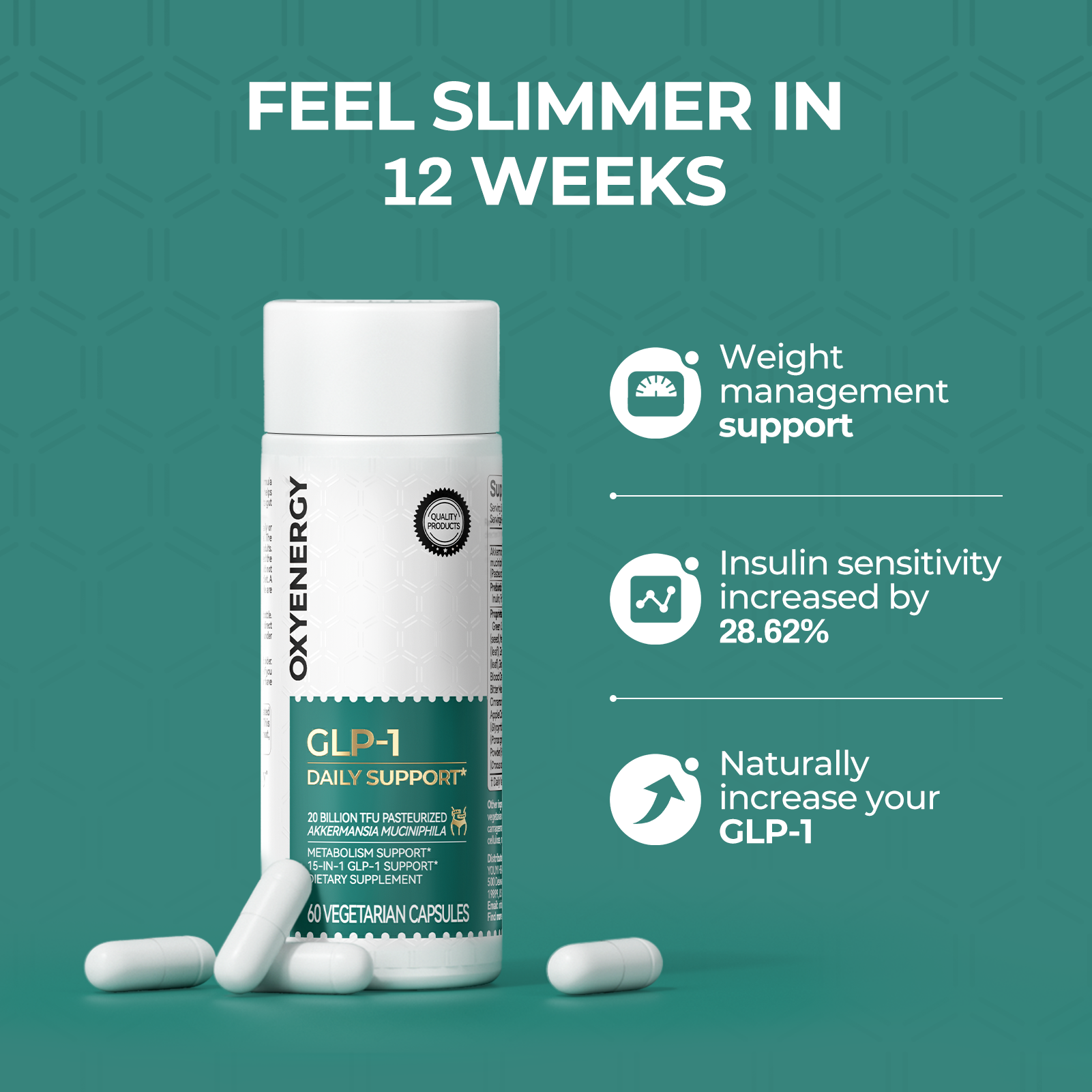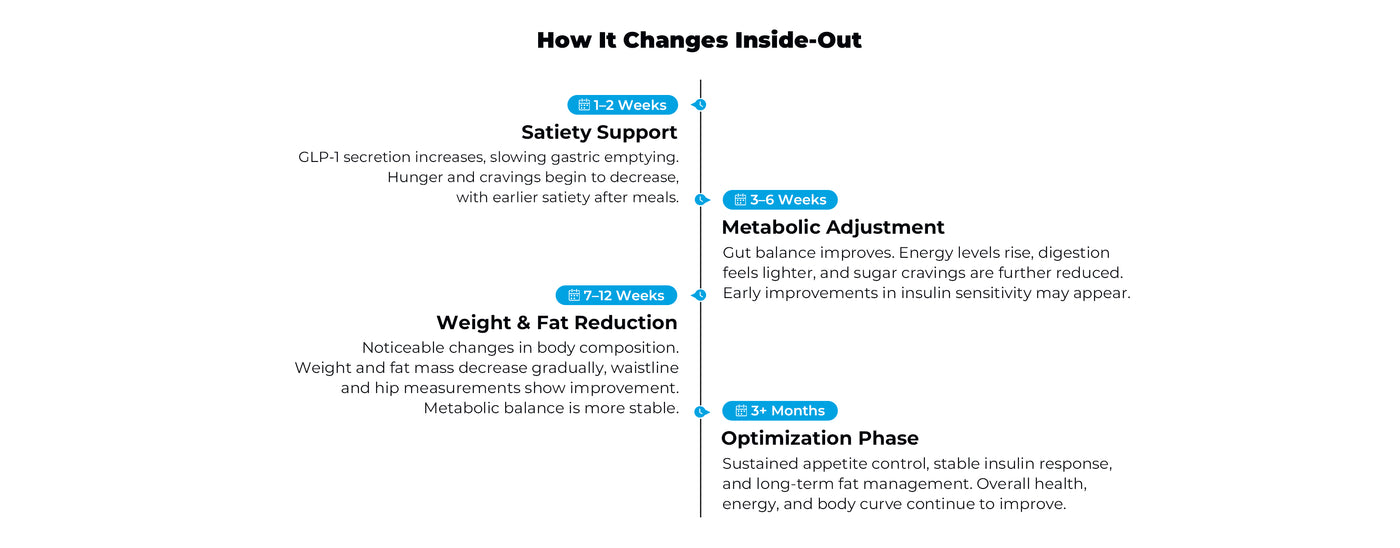- Supports satiety and appetite control through GLP-1