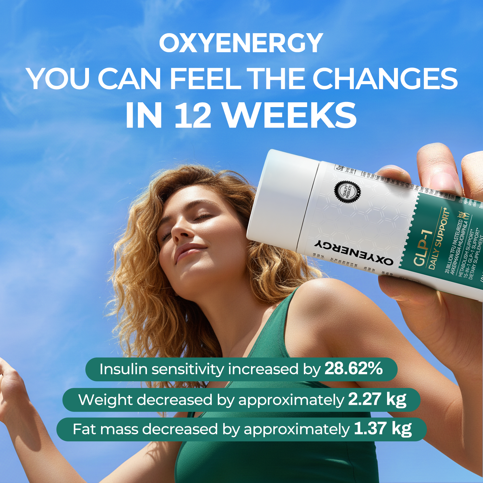 Each serving contains clinically effective levels of AKK probiotics, comparable to NMN. In just 12 weeks, experience improved metabolic health and a 28.62% increase in insulin sensitivity. Enjoy a healthier body composition with an average weight loss of 2.27 kg and fat reduction of approximately 1.37 kg. -