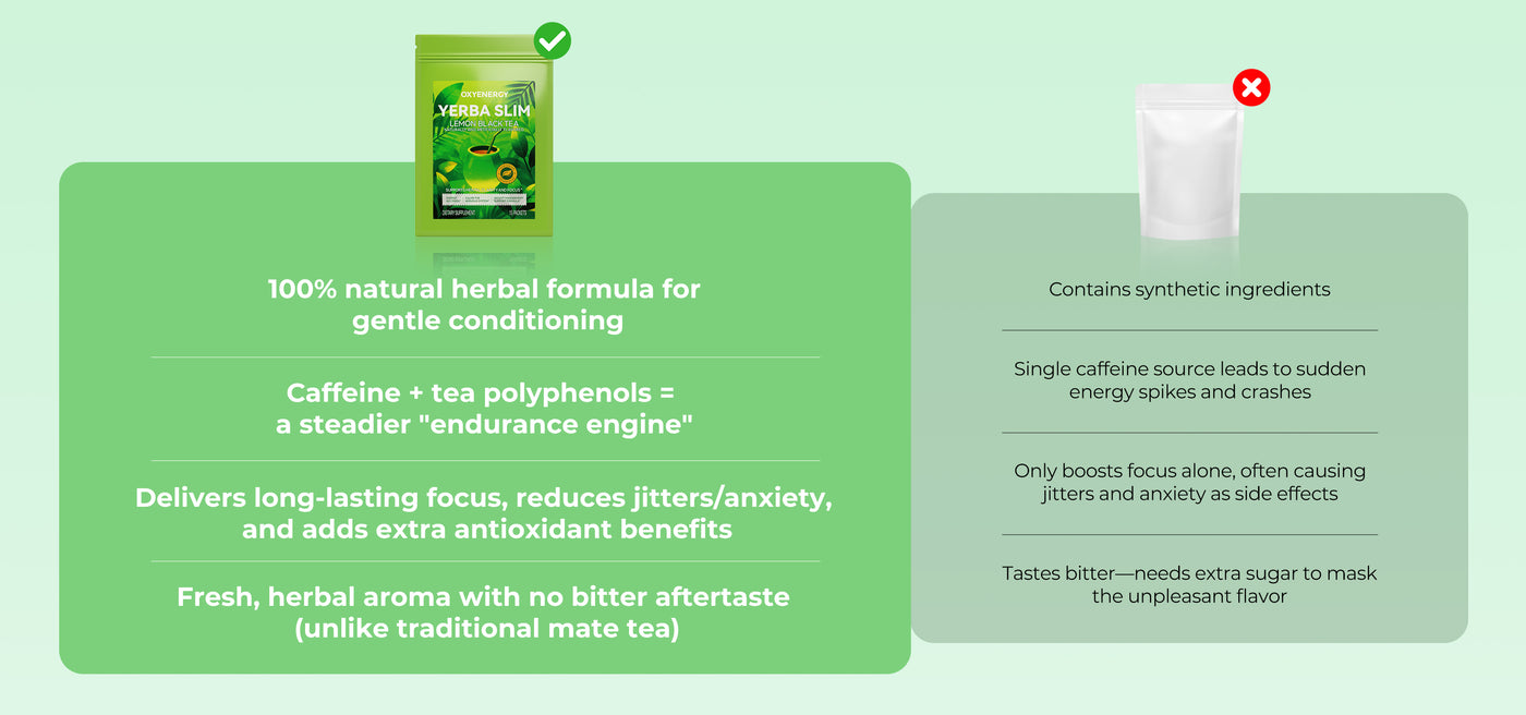 Unlike harsh stimulants or sugary energy drinks, YERBA SLIM delivers smooth, sustained energy with no jitters or crashes, while gently supporting appetite control, fat metabolism, cognitive performance, and stress balance.