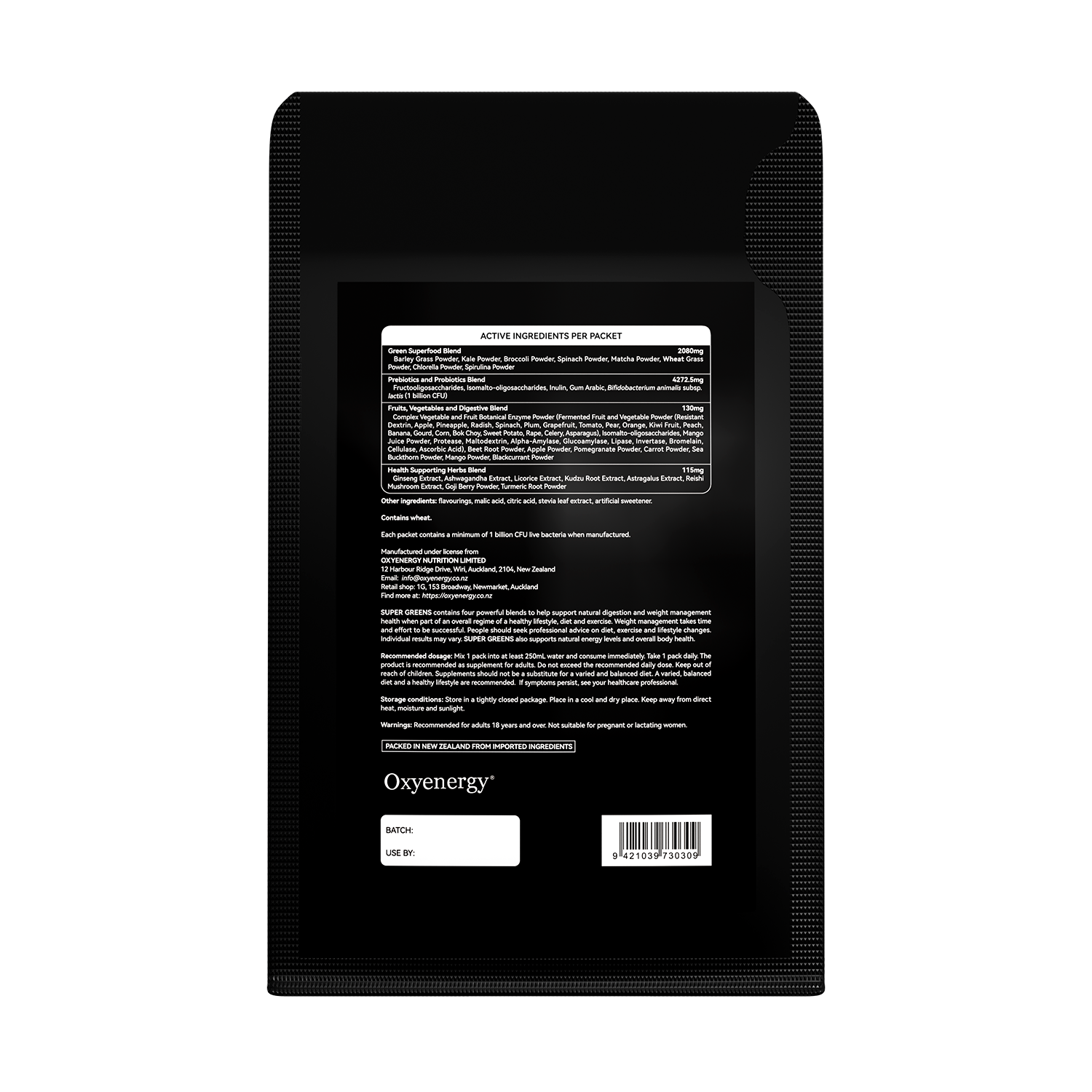 SUPER GREENS combines the essence of various fruits and vegetables, adds prebiotics and probiotics, and incorporates beneficial herbal ingredients, which helps to support overall body health.