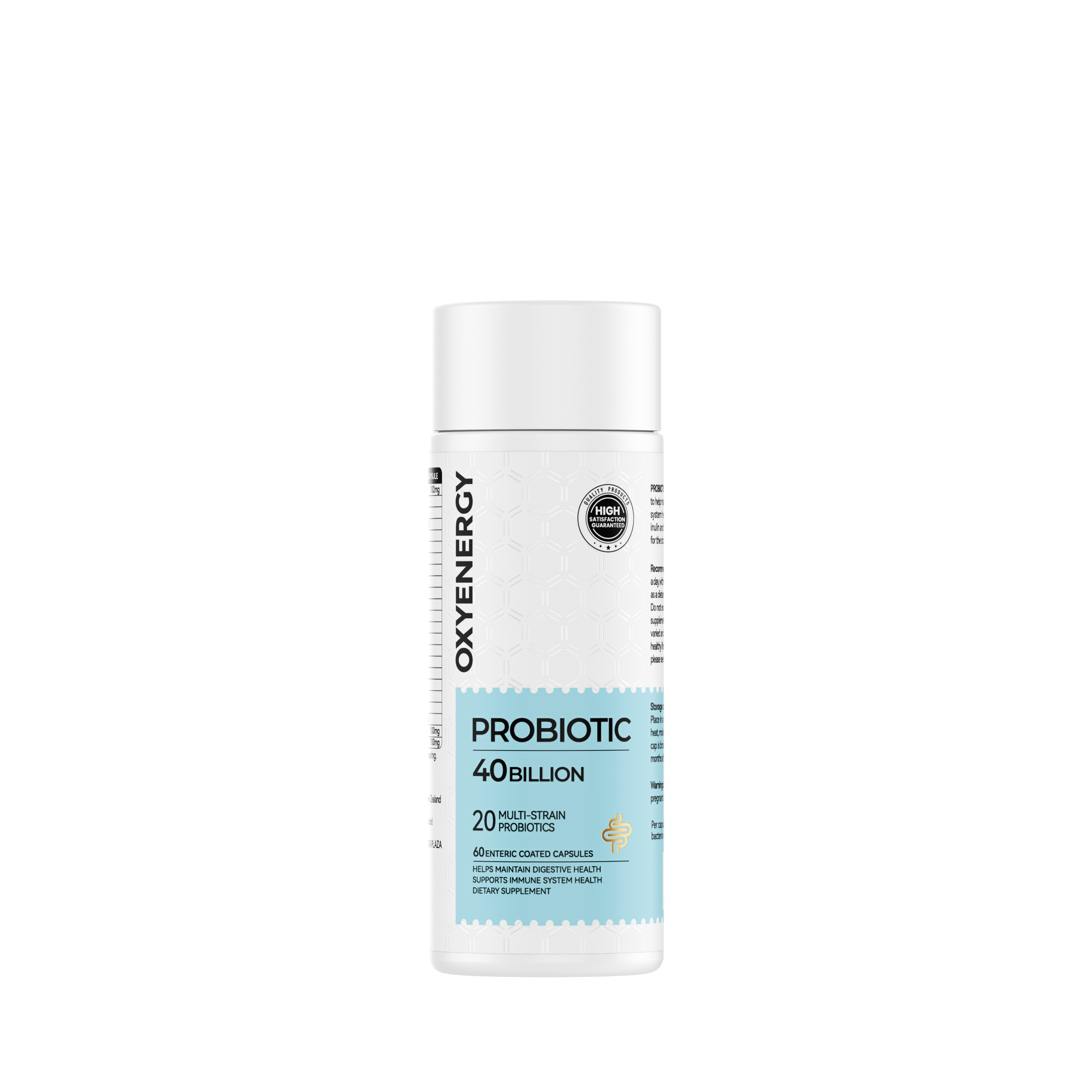 PROBIOTIC 40 BILLION contains 20 strains of probiotics to help maintain digestive health and support immune system health. This product also specially added inulin and fructooligosaccharides(FOS) to help care for the stomach and intestines.