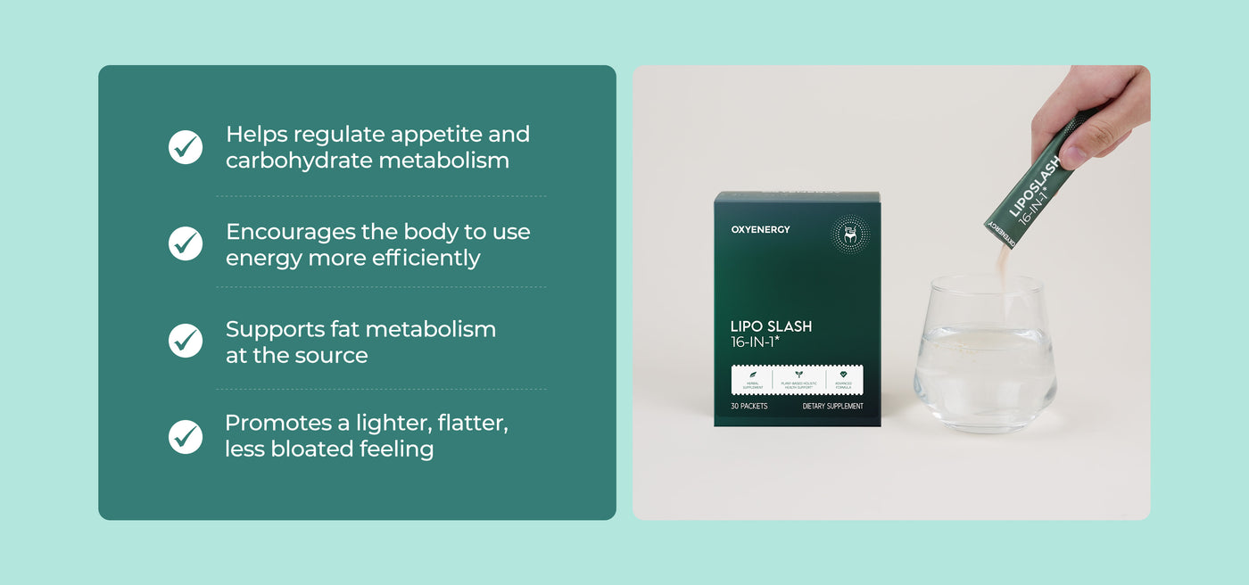 Lipo Slash: Dissolve one packet in water after a meal to support metabolism and digestive comfort.