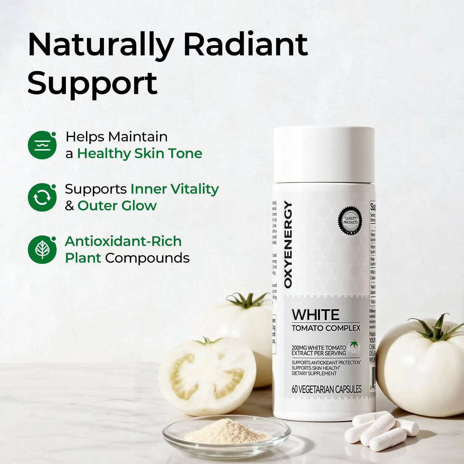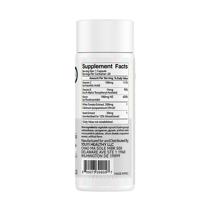 Contains 200mg of white tomato extract, which helps promote natural skin whitening, and promote youthful skin tone and texture. This product is also specially added with vitamin C, vitamin E and niacin, which can help to scavenge free radicals and improve uneven skin tone and pigmentation.