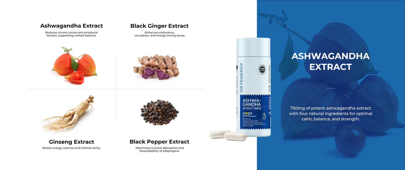 Relieves chronic stress and emotional tension. Helps the body resist fatigue and maintain cortisol balance.